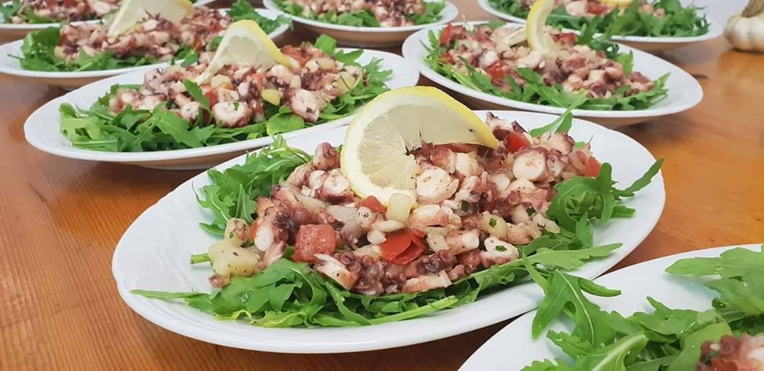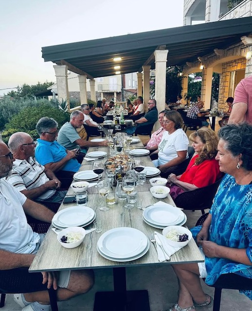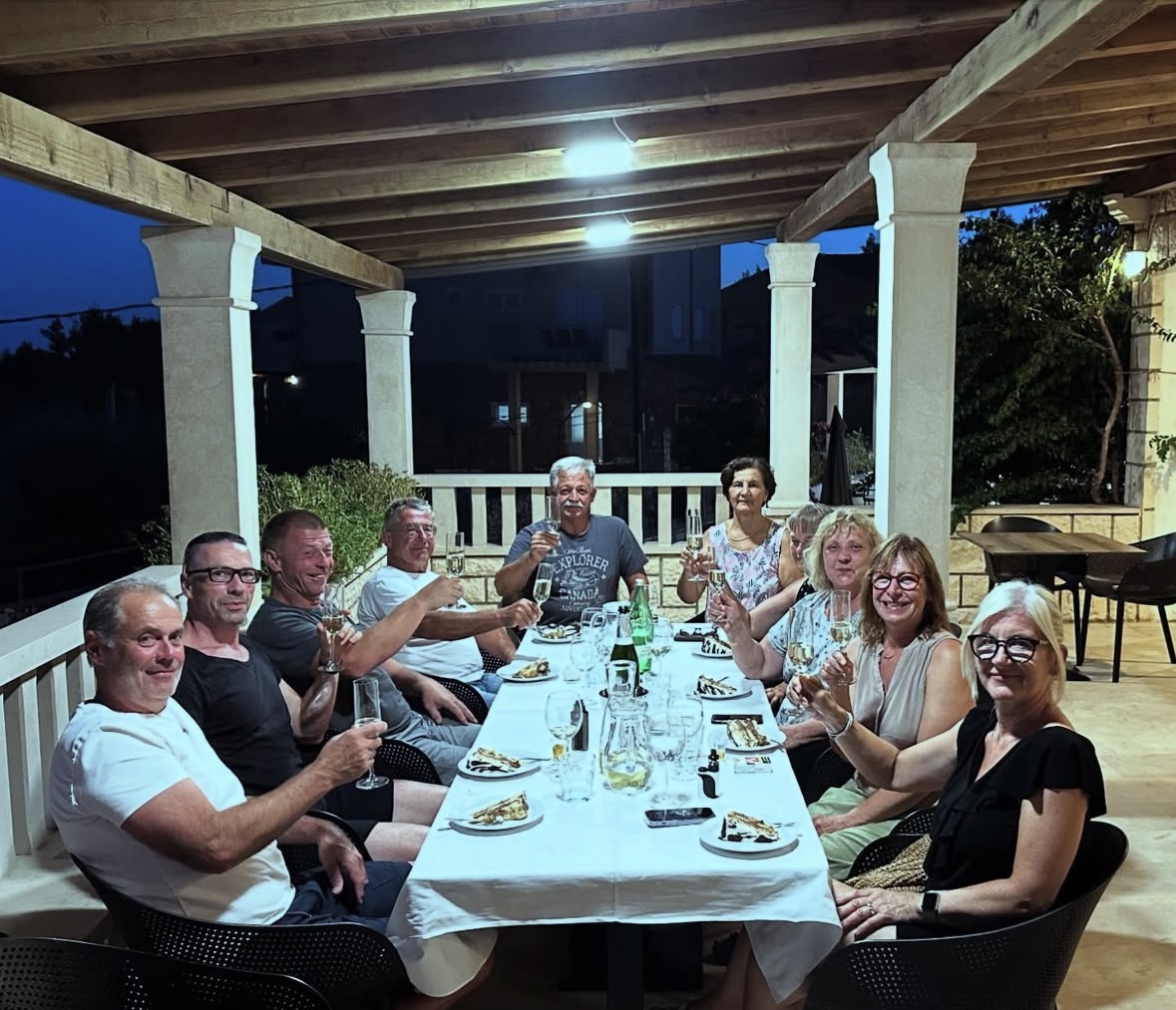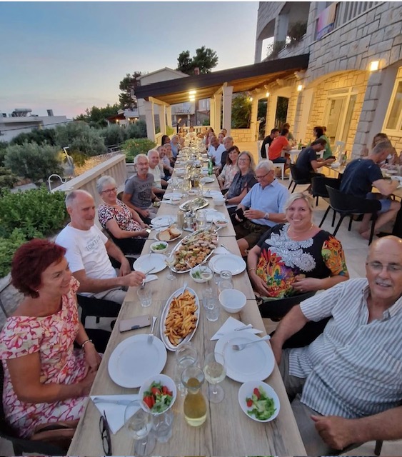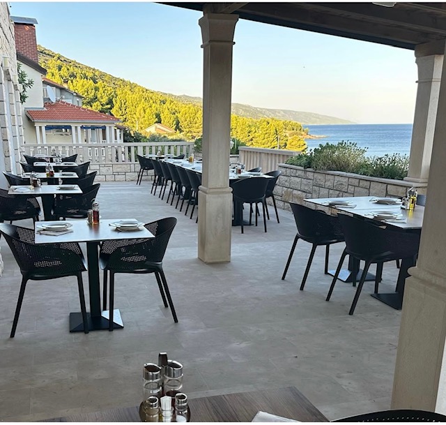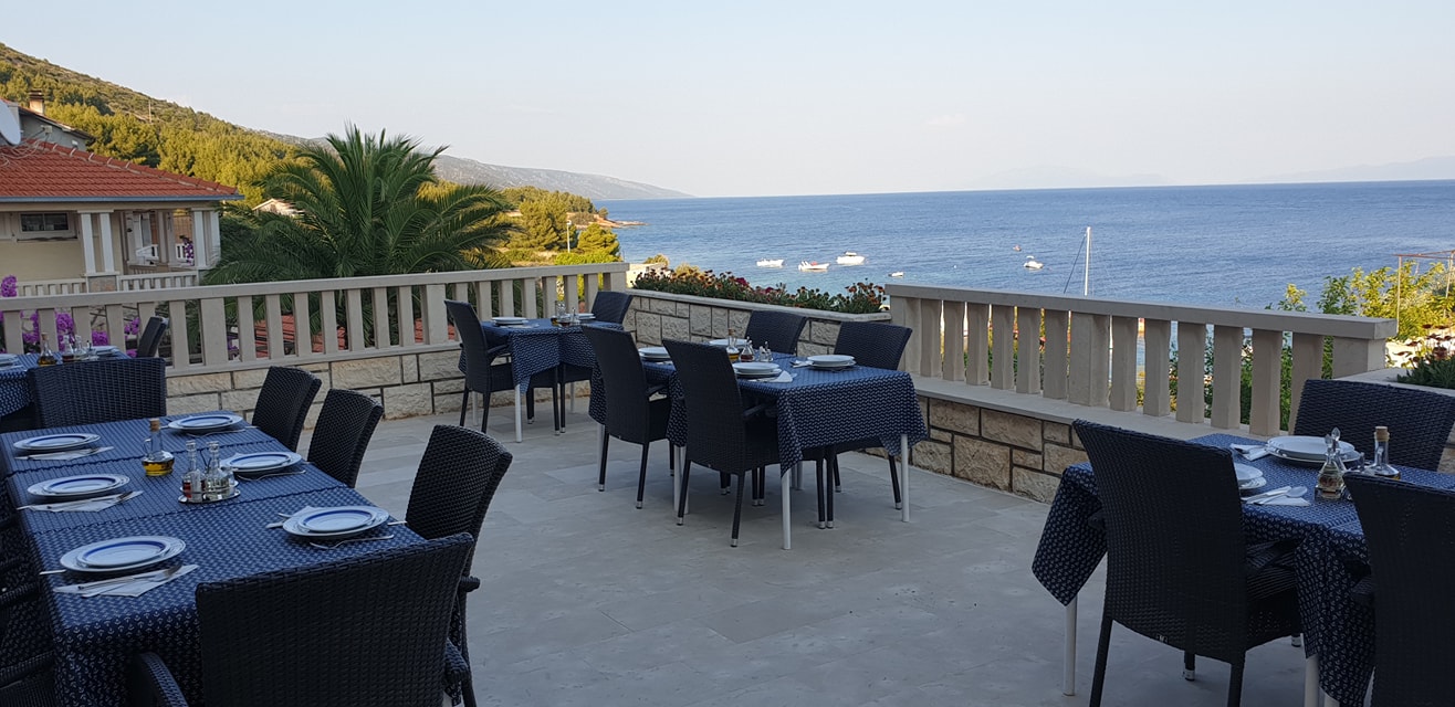 Večera se služi u tri slijeda. Predjelo, glavno jelo/salata i desert. Uz večeru služimo razne napitke, od kojih preporučamo naše vino proizvedeno od autohtonih sorata otoka Hvara. Ukoliko postoji potreba također nudimo i posebne menue (vegetarijanski, bezglutenski..).